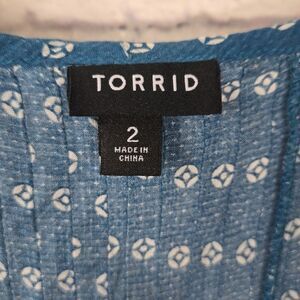 Torrid Blue Challis Sleeveless Button Down Top Pleated V-Neck Blouse 2 2X Plus