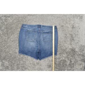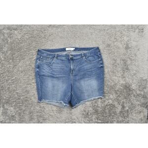 For sale: A gently preowned pair of Torrid women's cut-off shorts, size 26 (regular). These stylish shorts come in a vibrant blue color, perfect for adding a pop of color to your wardrobe. They feature a comfortable waist measurement of 22 inches and a length of 19 inches, crafted from soft, durable cotton. Ideal for warm weather days, these shorts are a versatile addition to any casual outfit. Don't miss out on this essential summer piece!
