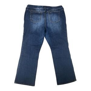 The product is a pair of Torrid Women Plus Size 22R Blue Denim Straight Jeans with ripped and distressed detailing for added style. These jeans feature a high rise, bootcut style with a 21.5" inseam and are made from a comfortable cotton blend fabric with added stretch. The jeans have a classic 5-pocket design and come in a regular fit, making them a versatile wardrobe staple for the summer, fall, and spring seasons.