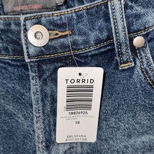 Torrid Blue Distressed Jeans denim high rise straight 18 regular NEW