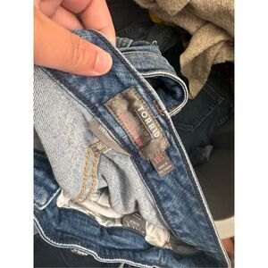 Stylish distressed skinny jeans. Classic blue denim. Perfect for casual wear.
