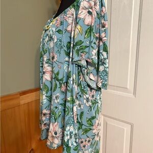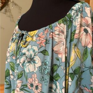 Torrid Blue Floral Blouse with Tie Front