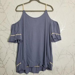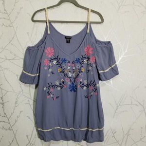 Torrid Blue Floral Embroidered Cold Shoulder Top