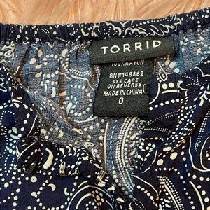 Torrid Blue Paisley Short Sleeve Challis Cold Shoulder Top Plus Size 0