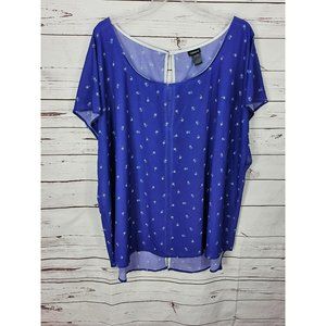 Torrid Blue Palm Dolman Sleeve Back Button Sheer Top Size 5