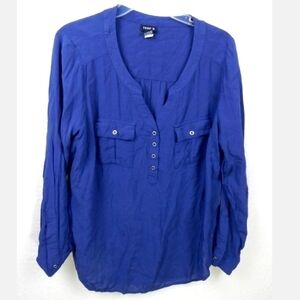 Item: Women's Blue Popover Tab Sleeve Blouse