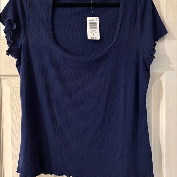 Torrid Blue Ribbed Ruffled Short Sleeve Tee