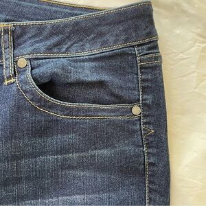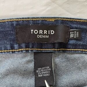 These Torrid skinny jeans feature a deep blue hue, offering a timeless and versatile look. The sleek design tapers elegantly towards the ankles, providing a modern and flattering silhouette. Crafted from high-quality denim, they ensure both comfort and style for any occasion.