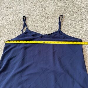 This blue camisole from Torrid features a relaxed, flowy fit with a sleeveless design. The lightweight fabric drapes softly, offering a comfortable and casual style. Its adjustable thin straps and A-line silhouette make it a versatile addition to any wardrobe.
