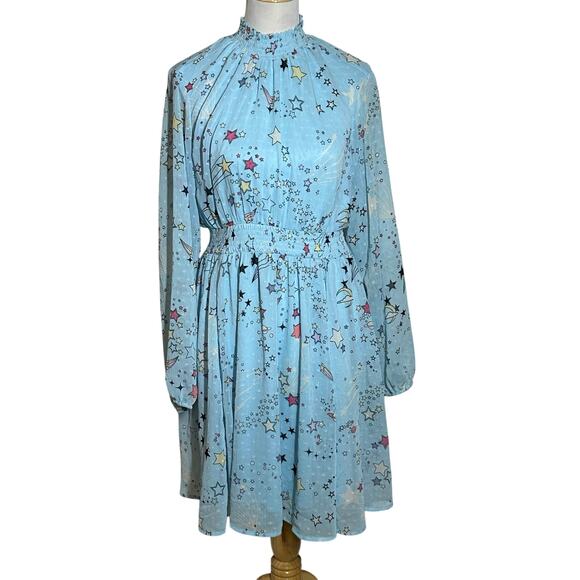 Torrid Blue Stars Mini Blouson Sleeve Mock Neck Skater Dress Sz 00 (M/L 10)