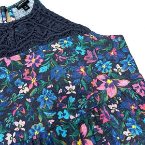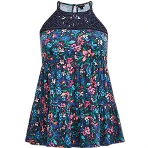 Torrid Blue Textured Jersey Crochet High Neck Tiered Top 1X