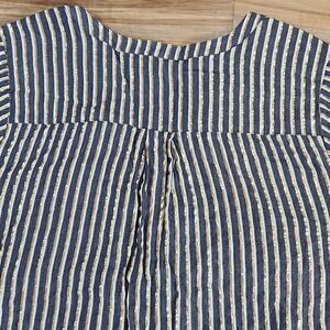 🔺️Torrid Blue, White, Metallic Gold Luxe Striped Buttoned Vneck Blouse 3X