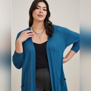 Torrid Blue Women's Long Open Cardigan Sweater Size 1X