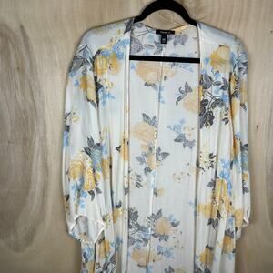 Torrid Blue & Yellow Floral Long Kimono Lightweight & Flowy (3X)