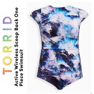 Torrid Blue Ocean Wave Wireless Scoop Back UPF Protect 40+ One Piece Swimsuit