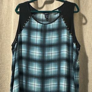 Torrid | Bluegreen and Black Plaid Studded Scoop Neck Top | Size 2