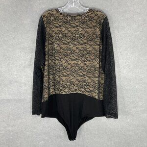 Torrid Bodysuit Women Sz 3x Black Lace Sheer Long Sleeve Scoop Neckline Boho