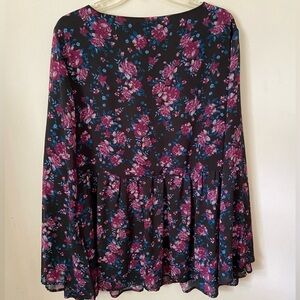 Torrid Bohemian Black Floral V-Neck Blouse Peplum Wide Bell Sleeves Size 2