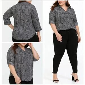 Torrid Boho Button-Up Snakeskin Print Roll Tab Sleeves Blouse Women 4 (4X) Gray