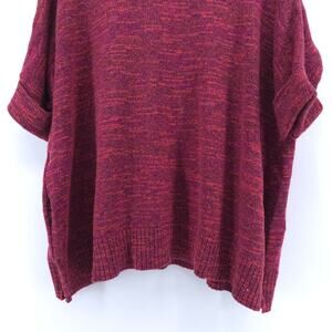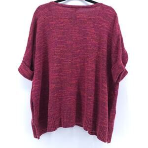 Torrid Boho Chic Vibrant Marled Maroon V-Neck Cuffed Short-Sleeve Sweater 14/16