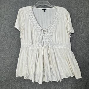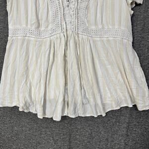 Torrid Boho Peplum Top Womens 1 Ivory White Stripe Crochet Lace Tie Front Rayon