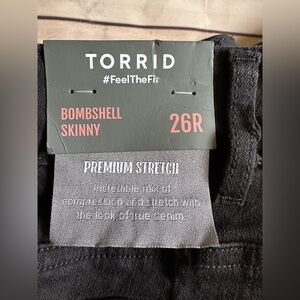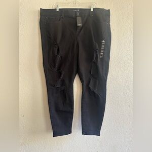 Torrid woman’s plus size Curvy jeans size 24 R Distressed Pockets Stretch Skinny High Rise black ripped skinny jeans. Perfect for casual outings. New with Tag .