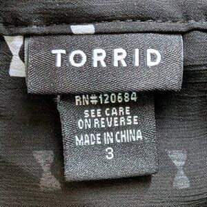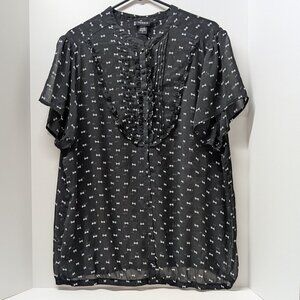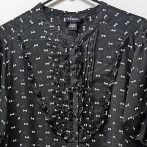 Torrid Bow Print Ruffle Front Blouse in Black & White