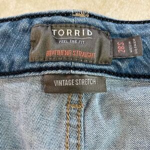 Women’s Torrid denim jeans size 28 S. Boyfriend straight vintage stretch. Like wash blue with some factory distressed areas. Great condition. Check out my closet for Torrid Jeans dresses and shirts in size 4 and 5!