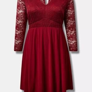 Torrid Brand NWT Size 3 At The Knee Studio Knit Lace Sleeve Fit N Flare Dress