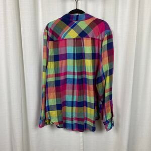 Torrid Bright Rainbow Plaid Brushed Fleece Button Up Shirt Sz.2