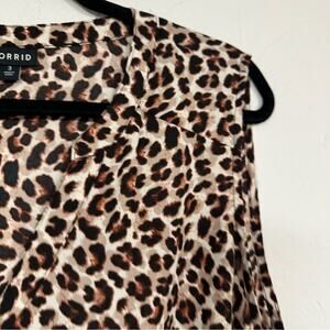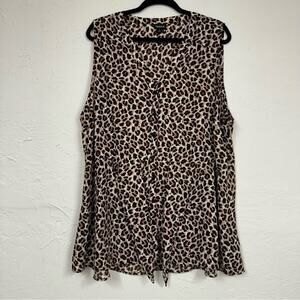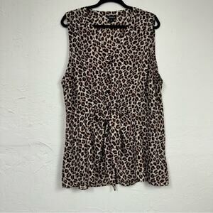 Torrid Brown Animal Print Sleeveless Blouse Womens 3X Tie Waist Buttons Fall Top