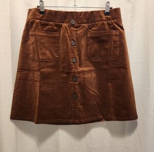Elevate your style with this chic brown button-front skirt. Perfect for any occasion, this skirt offers a timeless look. Has an elastic waist for a comfortable fit, two front pockets, is NWT.