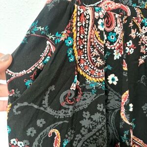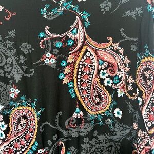 This paisley challis dress features a midi length and a flirty skater silhouette.