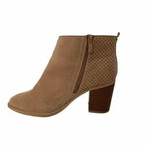 Perforated faux suede adds depth to a versatile stacked bootie that provides height while remaining comfortable.