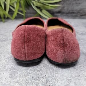 Classic flats with a notched detail on the vamp. Some wear & scuffing as shown. They look a little stretched in photos, but not when worn (see pic).