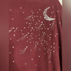 Torrid Burgundy Maroon Silver Sequin Moon Mock Neck Sweater 1X