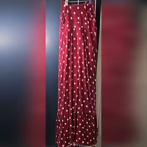 Chic burgundy maxi with white polka dots. Ideal for casual outings.