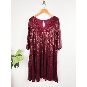 Torrid Burgundy Sequin Mini Skater Cocktail Party Dress Sz 1X