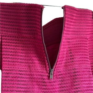 A violet rose mesh and elastic multi-striped overlay lends a retro-goes-future look. Zipper on the back. With a wide waistband and an A-line silhouette, the totally stretchy style offers a slip underlay that'll keep you covered.