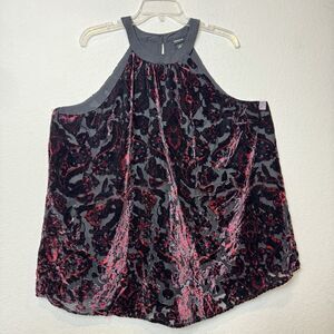 Torrid Burnout Velvet Halter Tunic Tank Top Red Black Paisley Goth Plus Size 2X