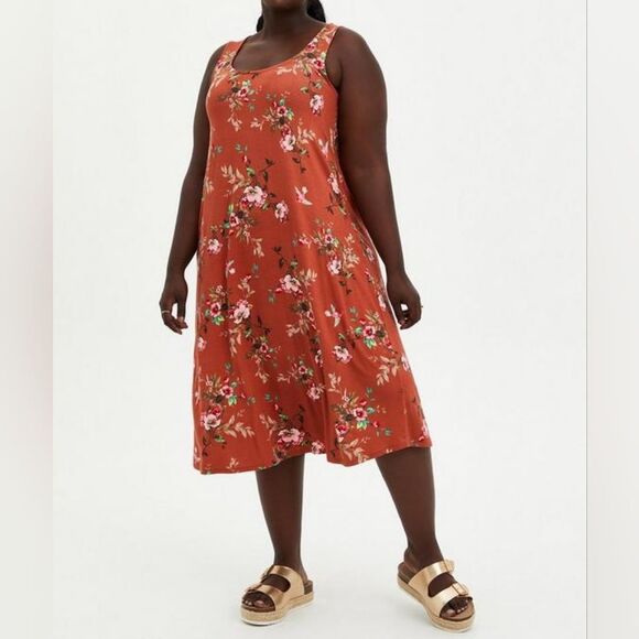 Torrid Burnt Orange Floral Super Soft Midi Tank Dress Womens Plus Size 0X Sleeveless