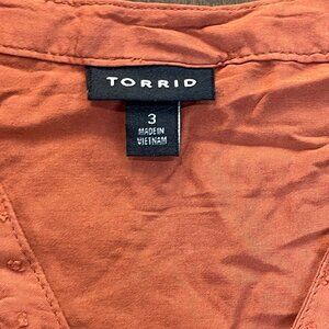 Torrid Button Front Blouse Rust Women's Plus Size 3X Rayon Swiss Dot Embroidered