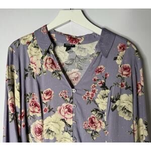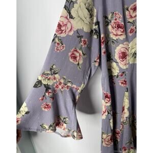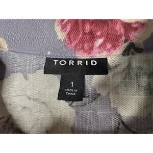 Torrid Button Front Top Sz 1x Purple Floral Rayon Slub Bell Sleeve Romantic