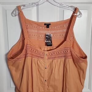 Torrid Button Up Embroidered Crochet Tank, Peach Bloom, NWT