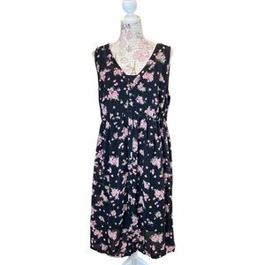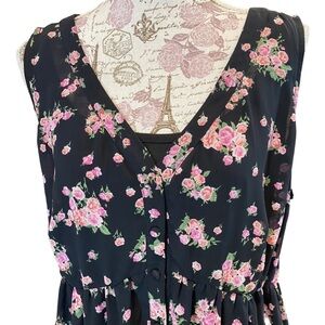 Torrid Button Up Sleeveless V-neck Black and Punk Floral Dress Size 1