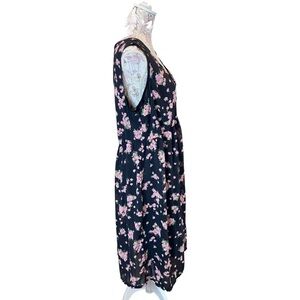 Torrid Button Up Sleeveless V-neck Black and Punk Floral Dress