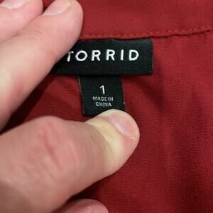 This is a pre-owned Torrid button-up V-neck blouse in size 1.