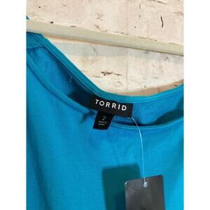 Torrid Callie T-Shirt Dress Womens 2X Teal French Terry Stretch Belted Plus
