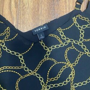 Torrid Cami Plus Size 0 L Top Black Gold Chain Print Adjustable Spaghetti Straps