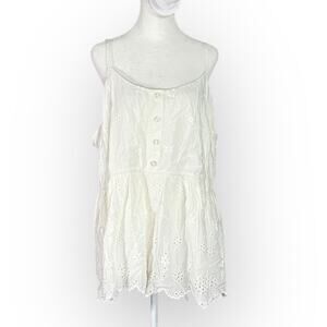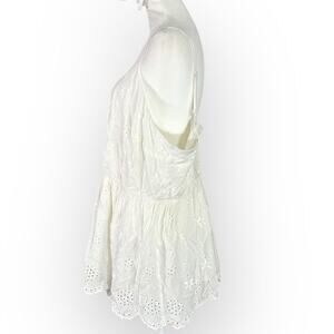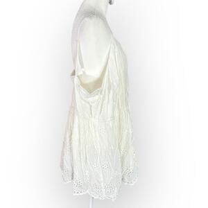 Torrid Cami Tank Top Womens 3/3X Plus White Sleeveless Eyelet Smocked Scoop Neck